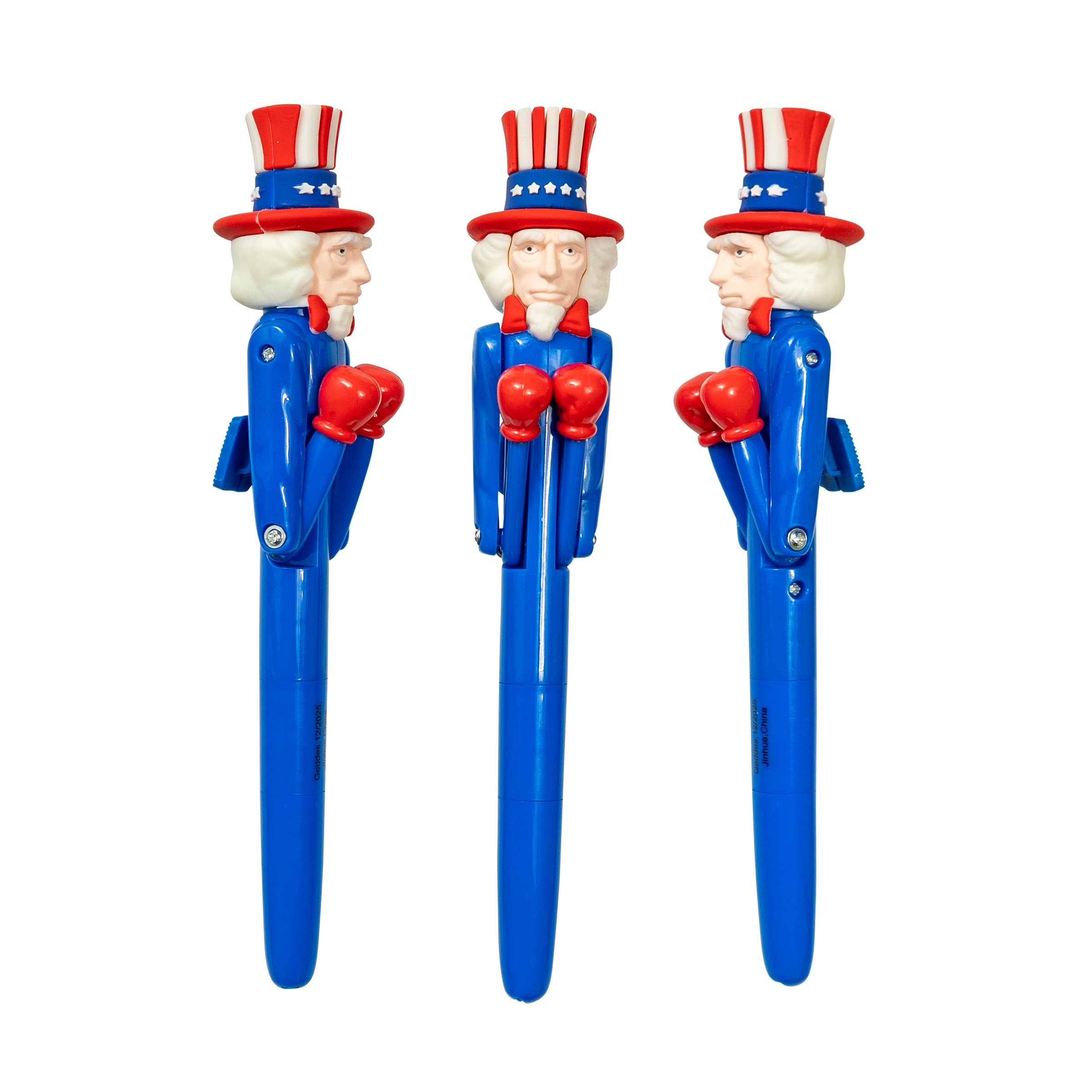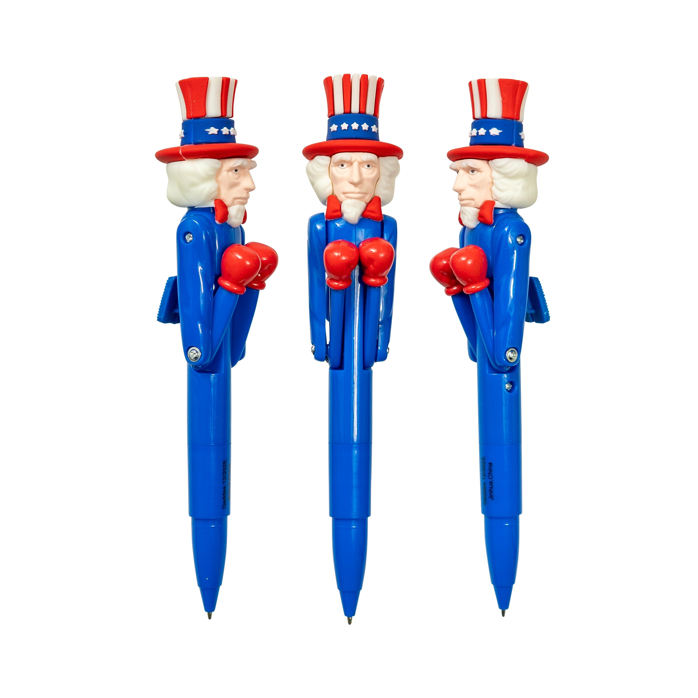 Get ready for a patriotic pen that really packs a punch! The Slammin Sam’ Pen is a novelty ball-point pen topped with an Uncle Sam character in red, white, and blue, complete with punch-action arms that add movement and fun.