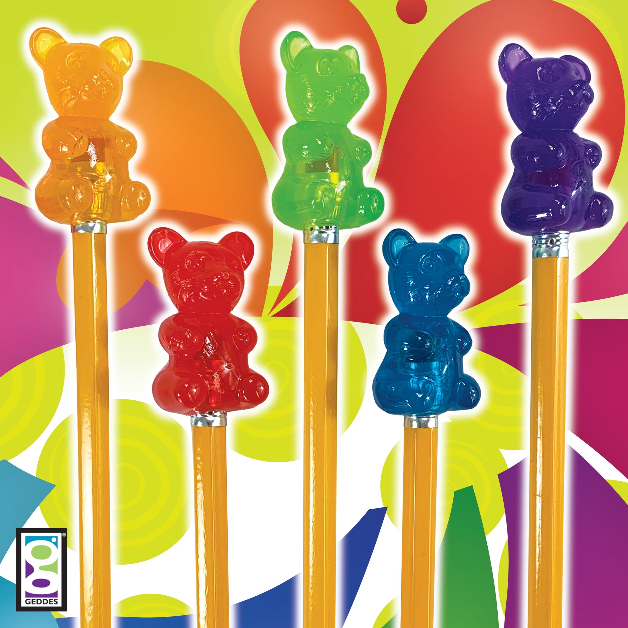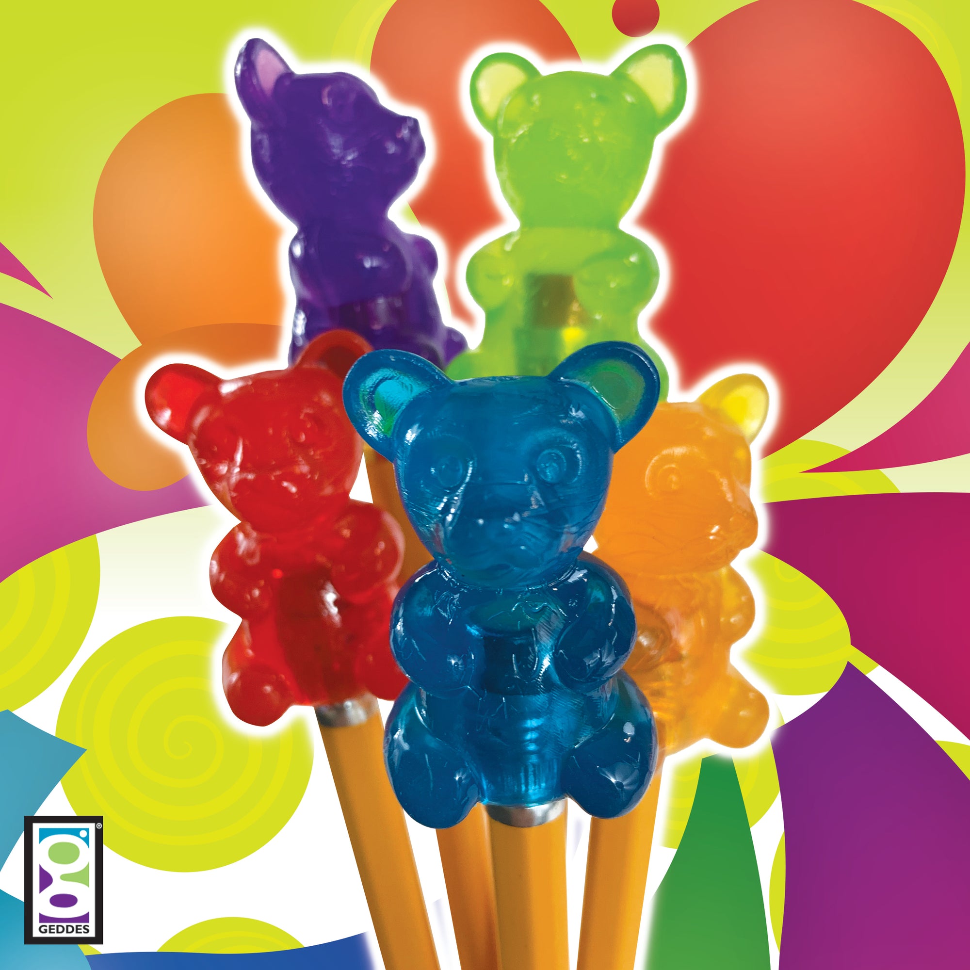 Our Scented Gummy Bear Pencil Topper is the perfect addition to any pencil. With bright colors and delicious smelling scents, these cute bears will brighten the day of everyone who sees them!
