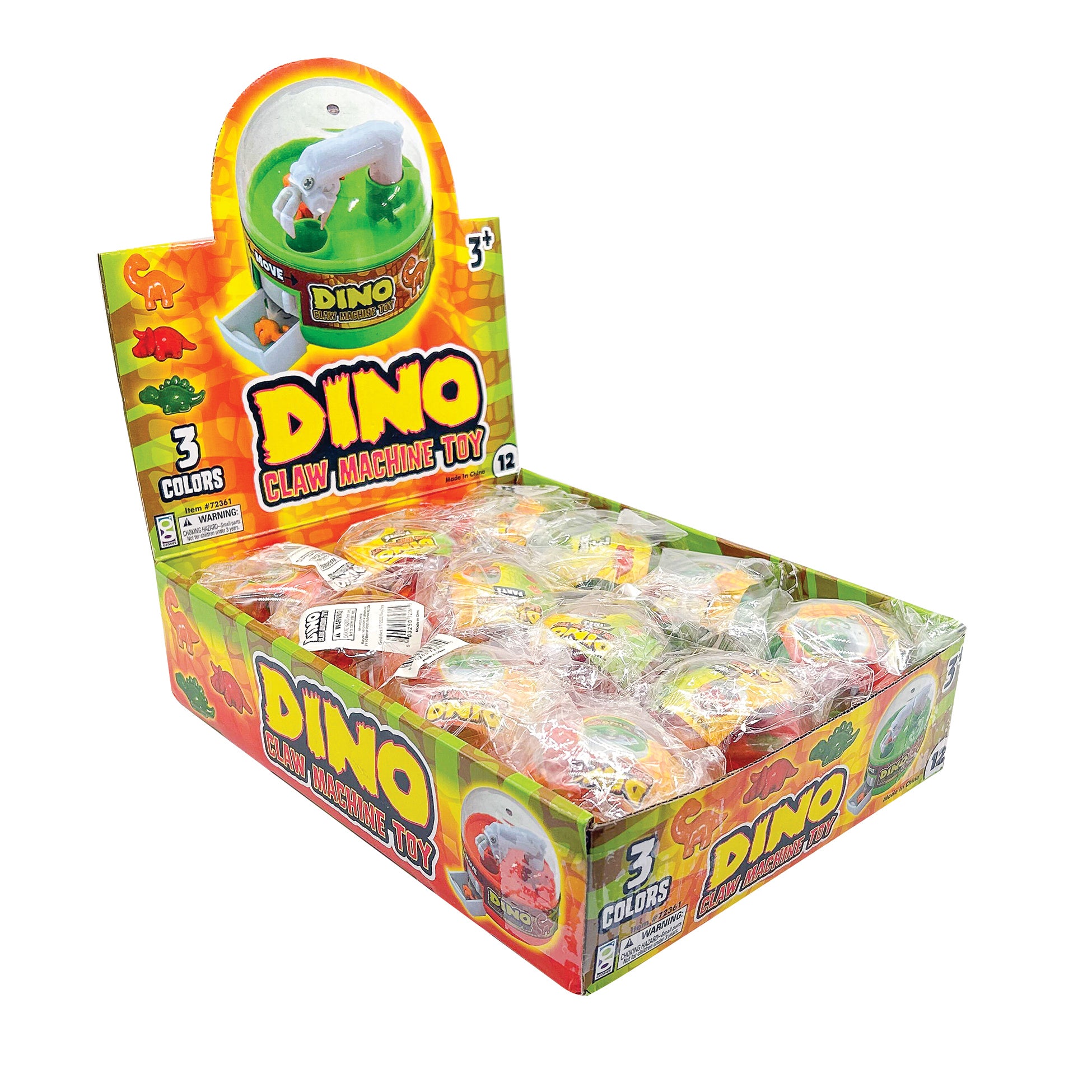 The smallest claw machine around fits in the palm of your hand! Each toy contains 8 mini dinosaur prizes in red, orange, and green. Do you have the skills to grab them up?! Control the claw with 3 levers (left/right, up/down and grab). Open the chute to collect your prize!