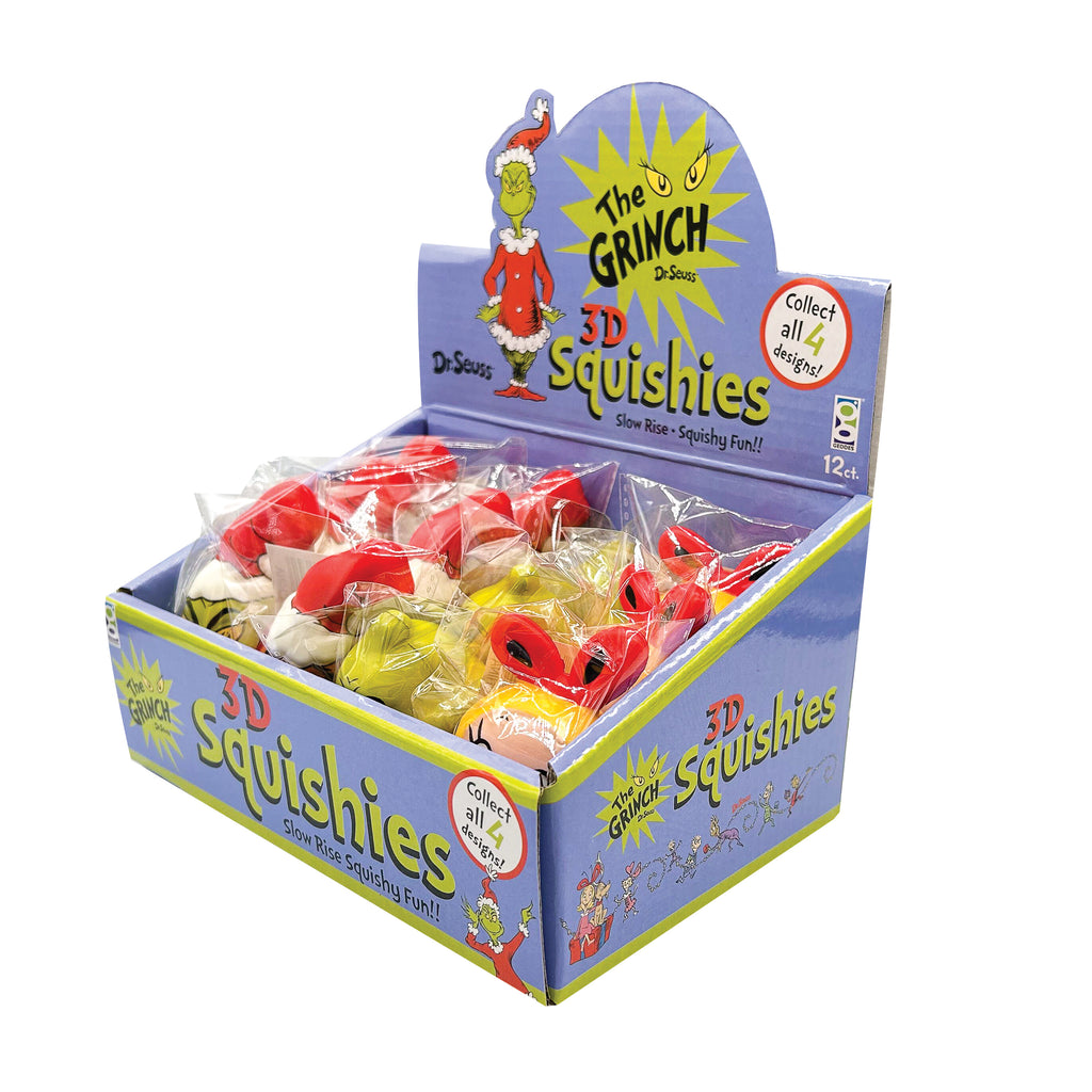 Squeeze your holiday stress away with these adorably mischievous Dr. Seuss™ The Grinch Slow Rise Toys! Choose from The Grinch (with or without Santa's hat) or Cindy Lou Who and Max, each cuter than the next. Beat the last-minute holiday stress with these fun and squishy, slow-release delights!