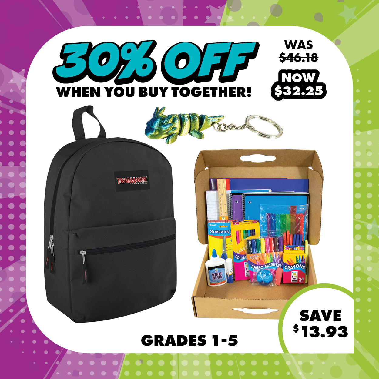Back-to-school made simple! The Elementary Ready Bundle is the perfect solution for students in Grades 1–5. Packed with all the essentials your child needs to start the school year strong; this bundle includes a durable backpack, and a fully stocked school supply kit—all at 30% off the regular price.