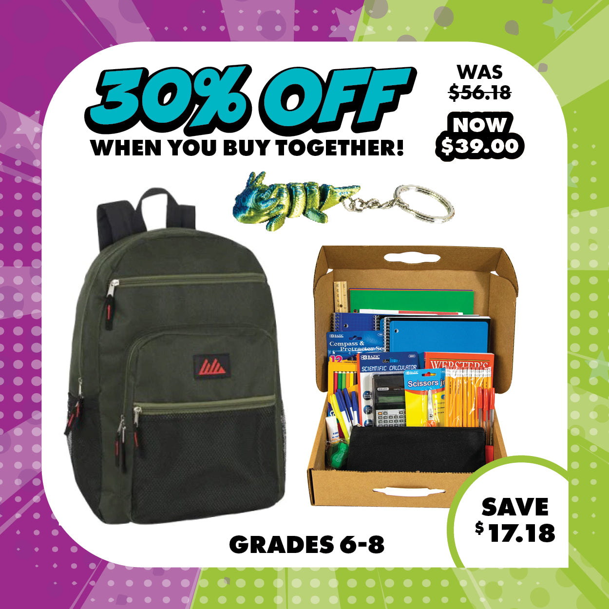Take the stress out of back-to-school shopping and set your student up for success with the Junior High Ready Bundle. Perfect for Grades 6th, 7th, and 8th. Order now while supplies last!