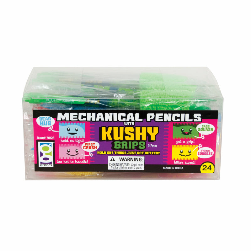 Hold on! Things just got better with our kushy Grip Mechanical Pencil! 4 fun colorful designs. Each MP features a kushy comfy grip that makes writing truly luxurious!