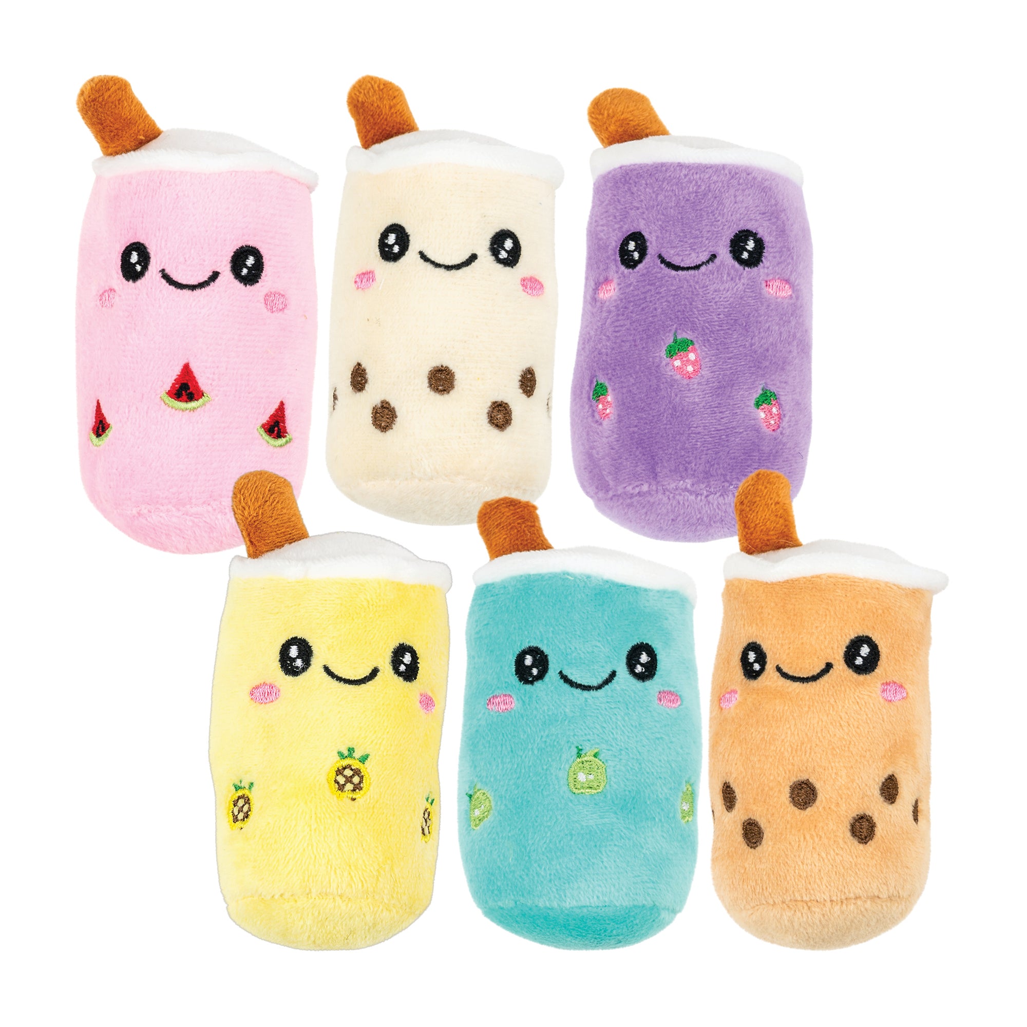 These adorable plush boba teas are adorned with kawaii style faces. Assortment includes 6 different colors: pink, cream, purple, yellow, aqua, and brown. You get 2 of each color per bag.